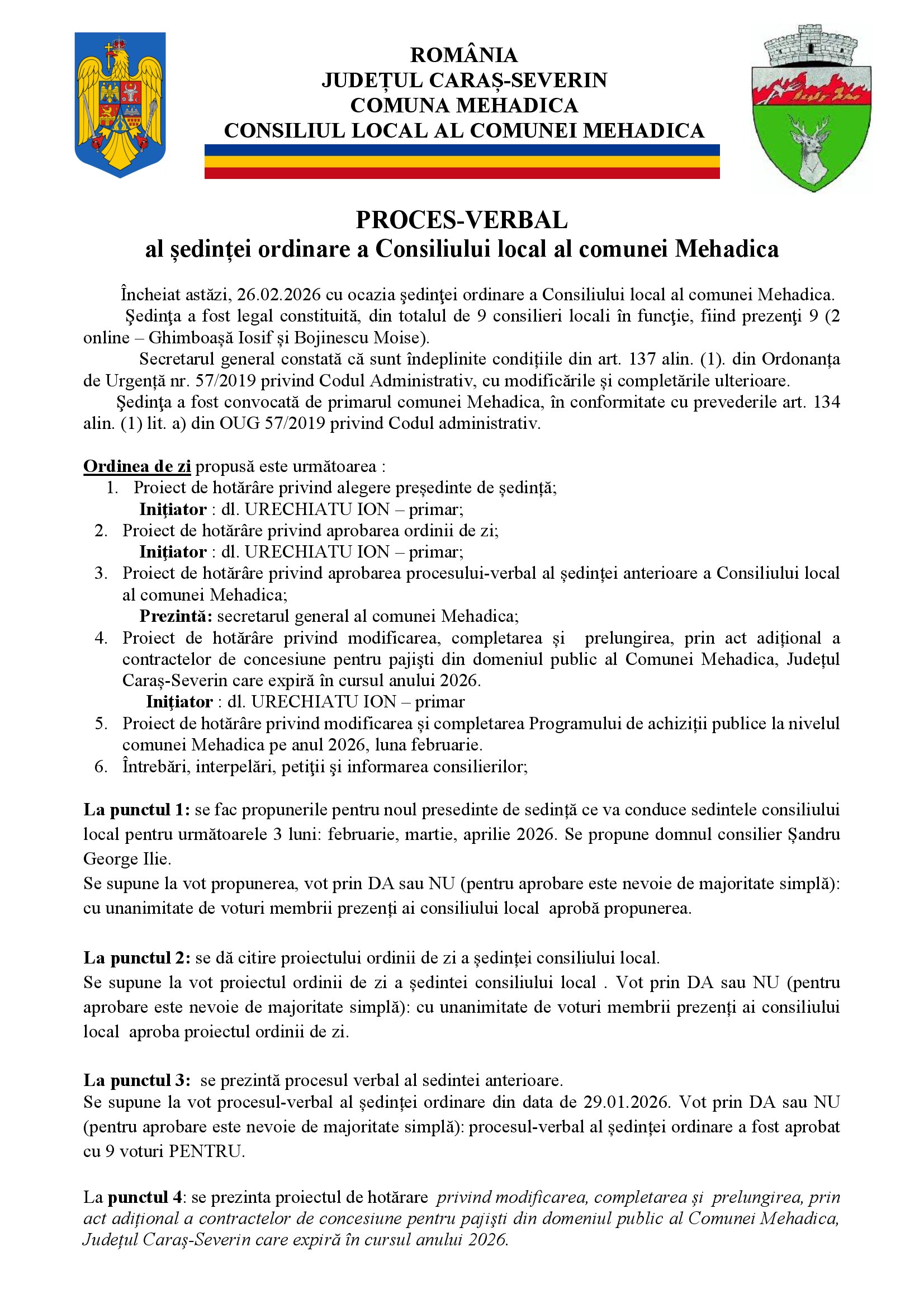 Regulamentul de organizare și funcționare al Consiliului local al Comunei Mehadica