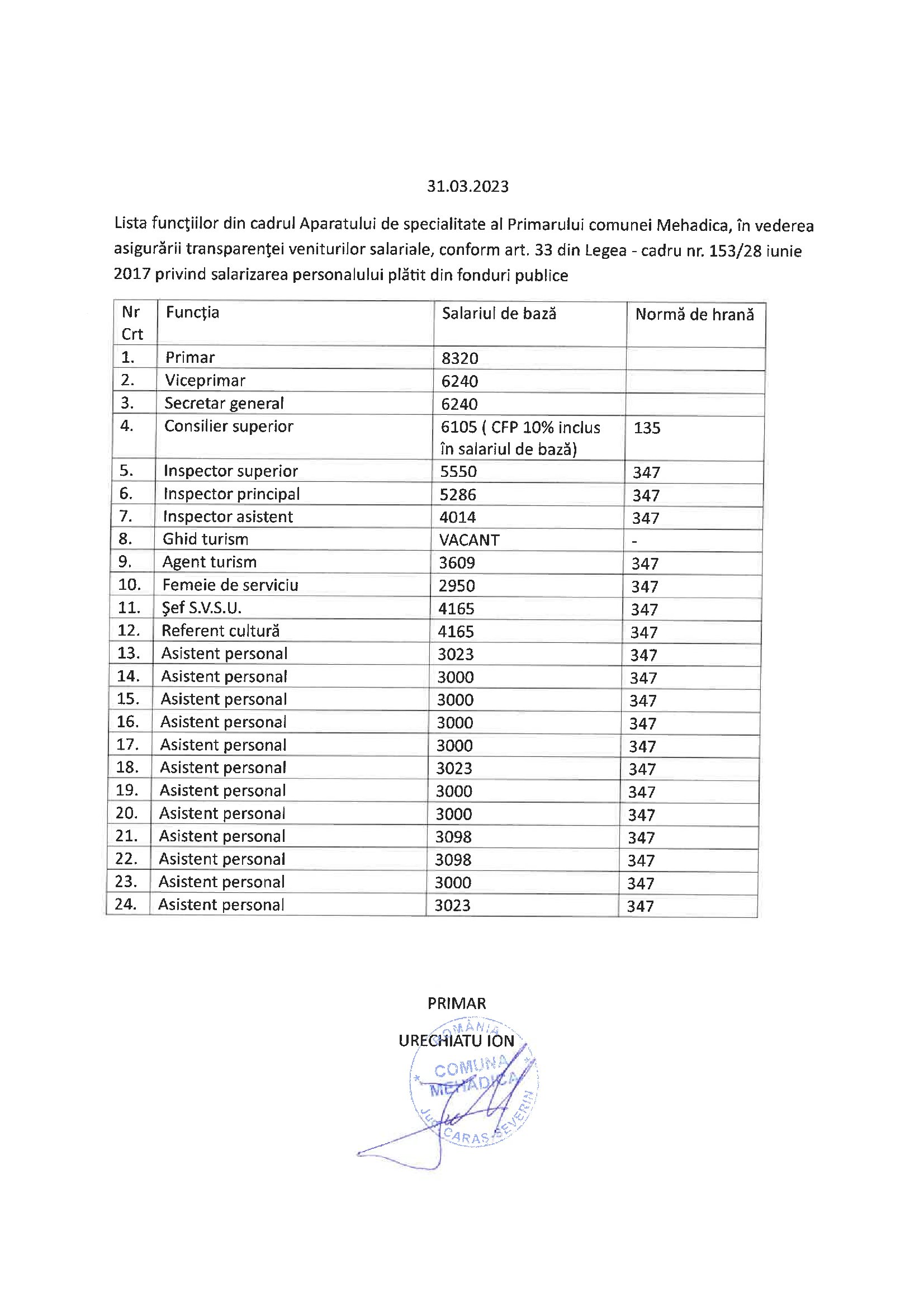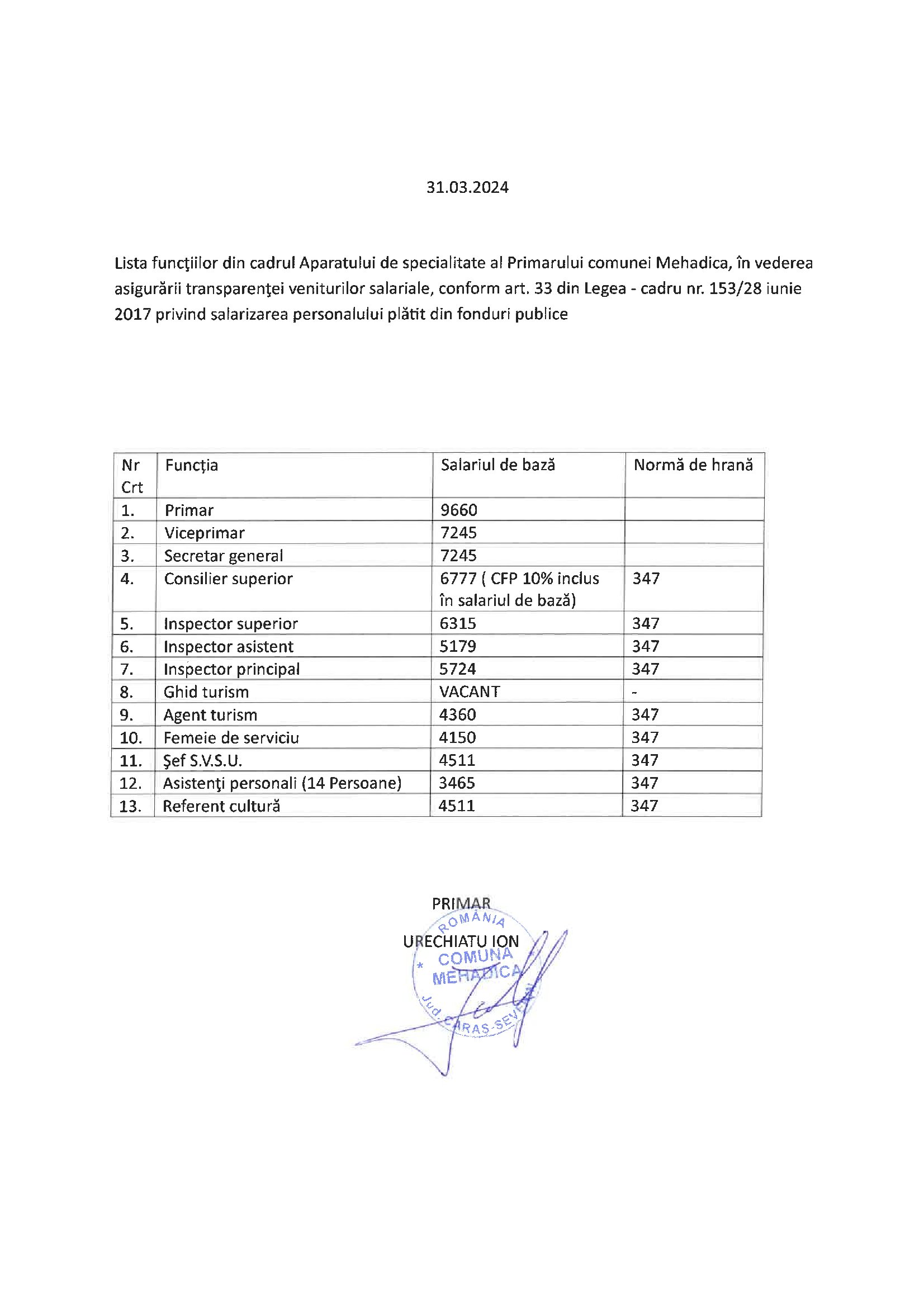 • 23.04.2024- ANUNT privind examenul de promovare in gradul profesional imediat superior celui detinut , pentru functionarii publici din cadrul aparatului de specialitate al Primarului Comunei Mehadica