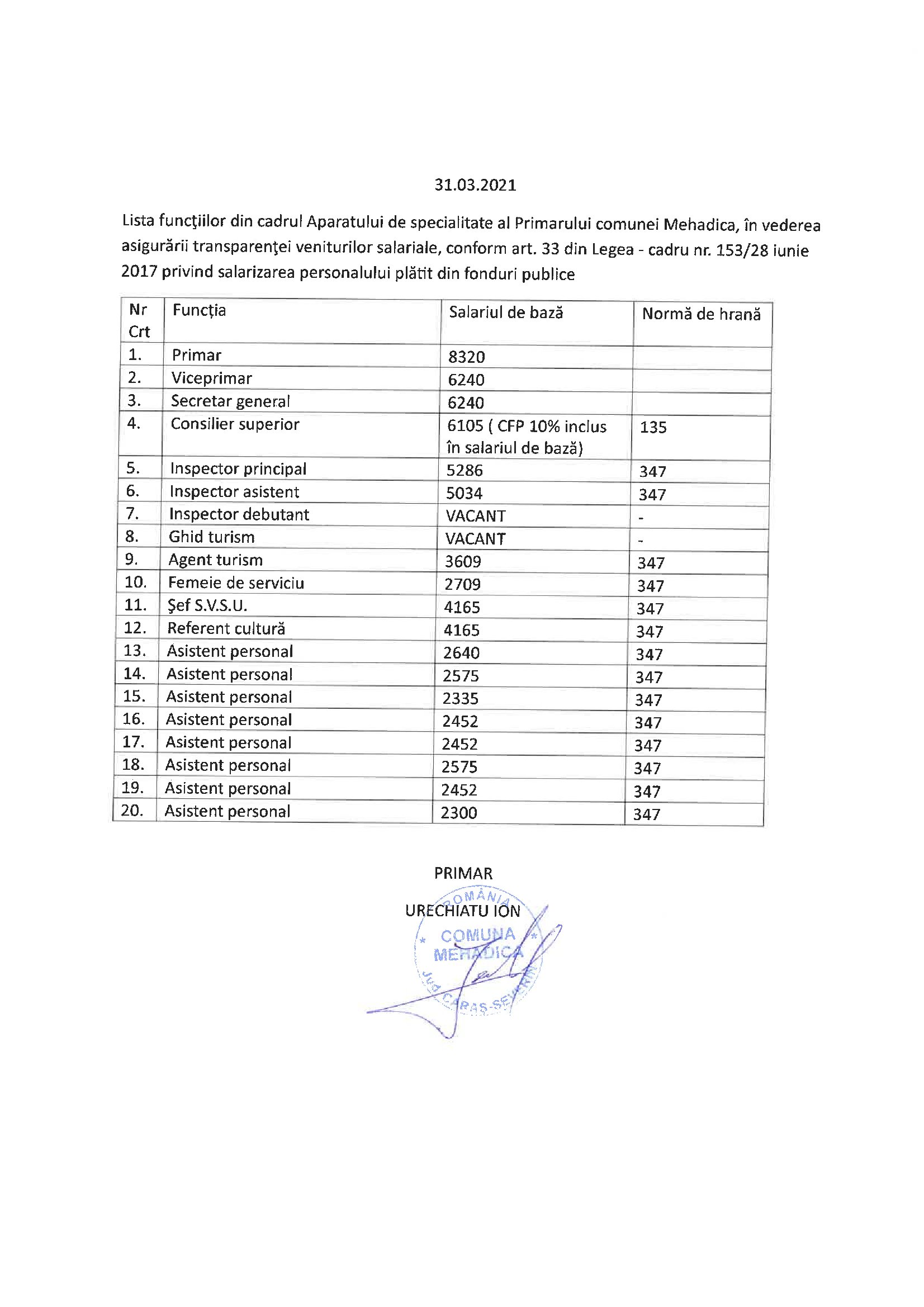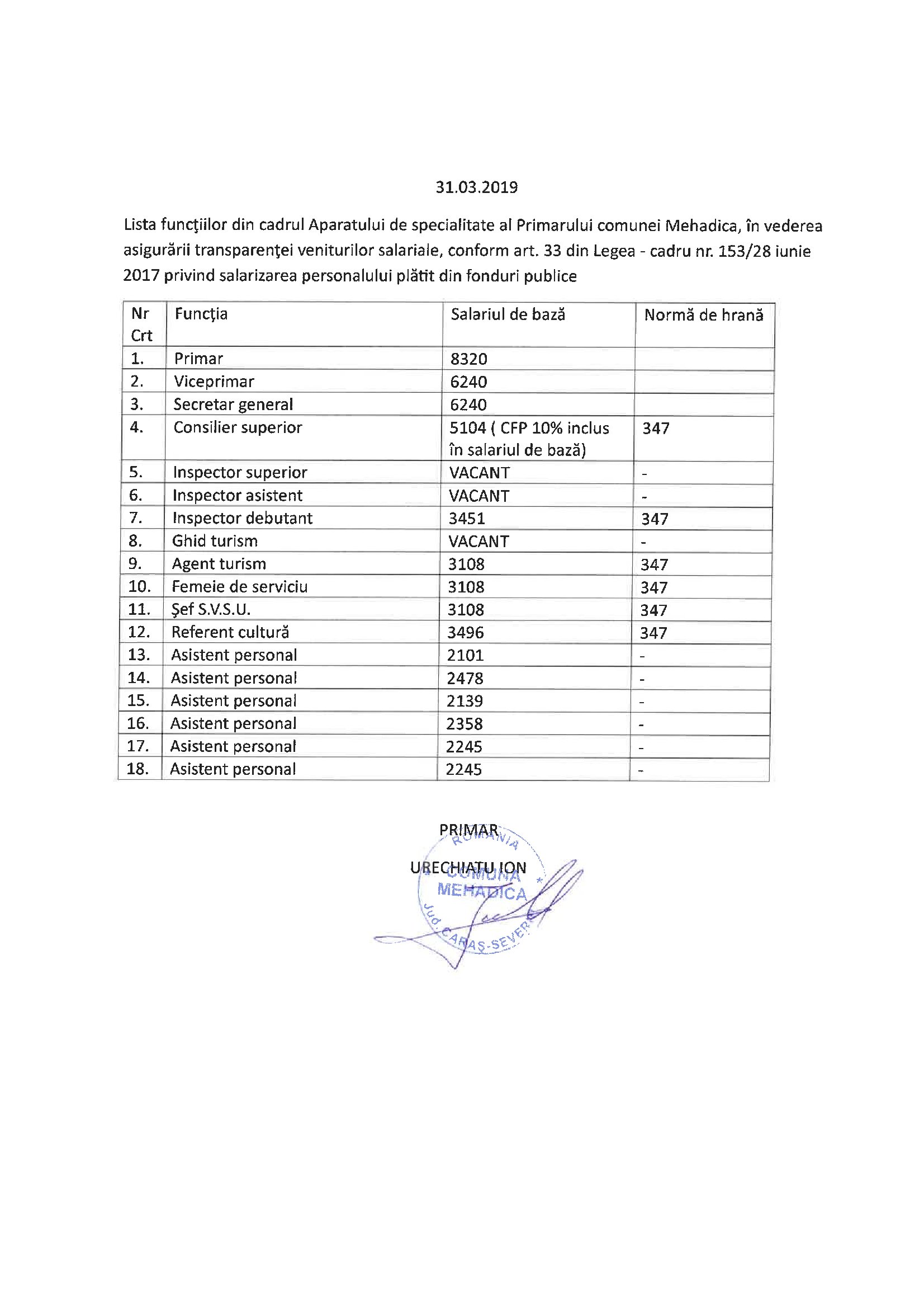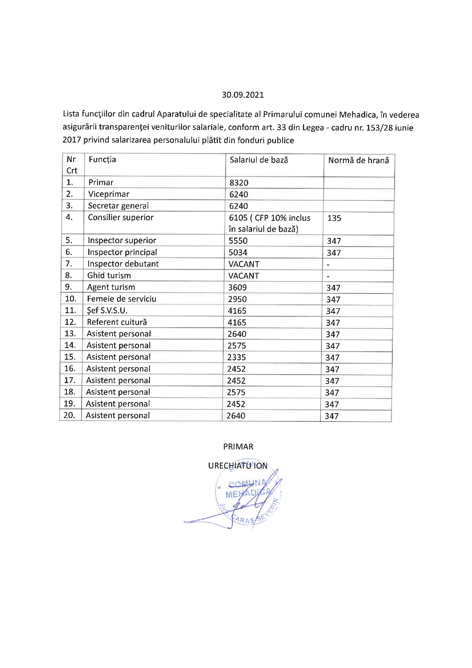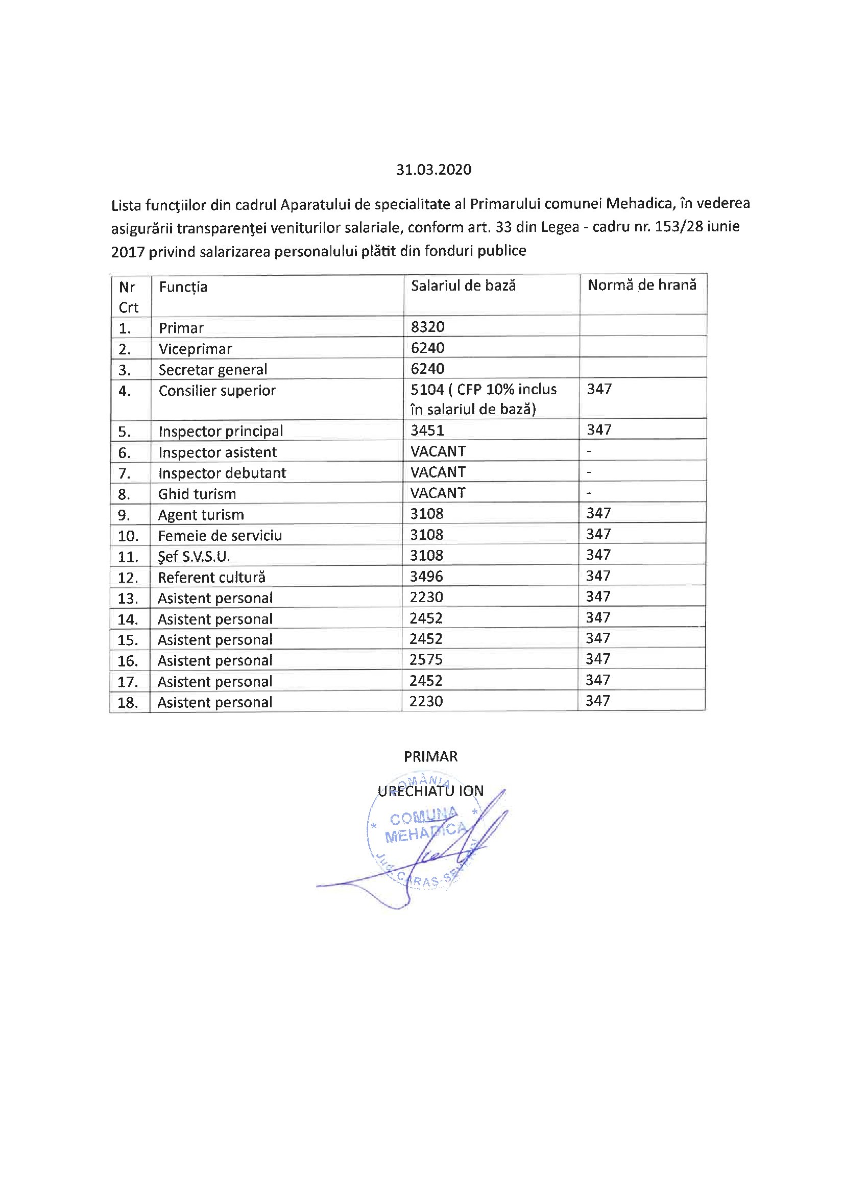 • Anunt privind rezultatul selectie de inscriere dosare la concursul din 27-29.04.2020 pt. ocuparea functiei de Secretar al Comunei Mehadica