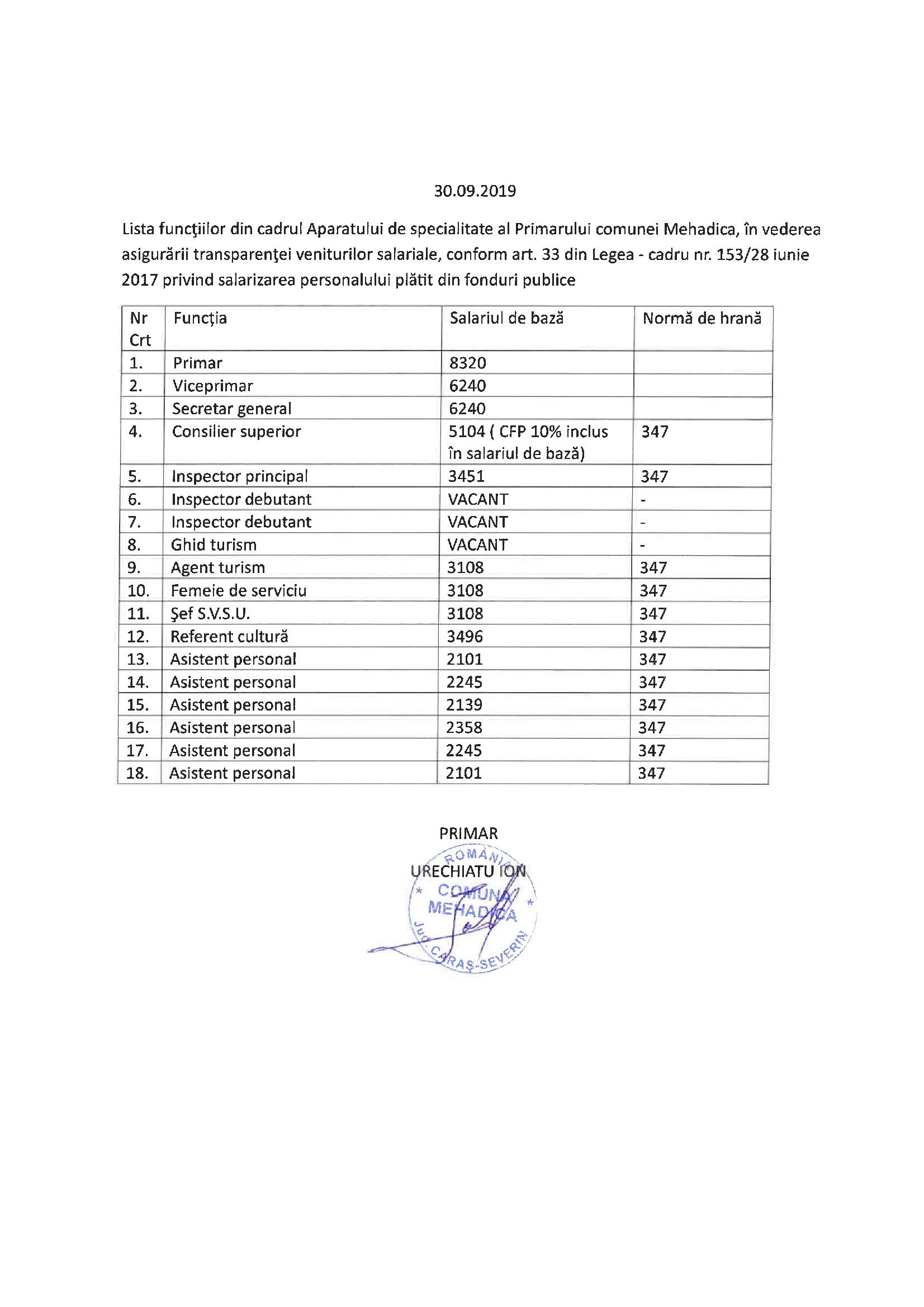 • Anunt pentru ocupare post Secretar Comuna Mehadica
